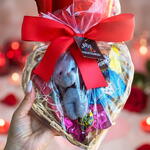 cartão personalizado - 1 un. ursinho chaveiro 11cm - 1 un. kit kat - 1 un. balão decorativo - 1 un. bandeija de coração mdf - 1 un. sacola presenteavel - 1 un. laço grande de fita vermelha - 1 un. chocolate sorrisos - 3 un.