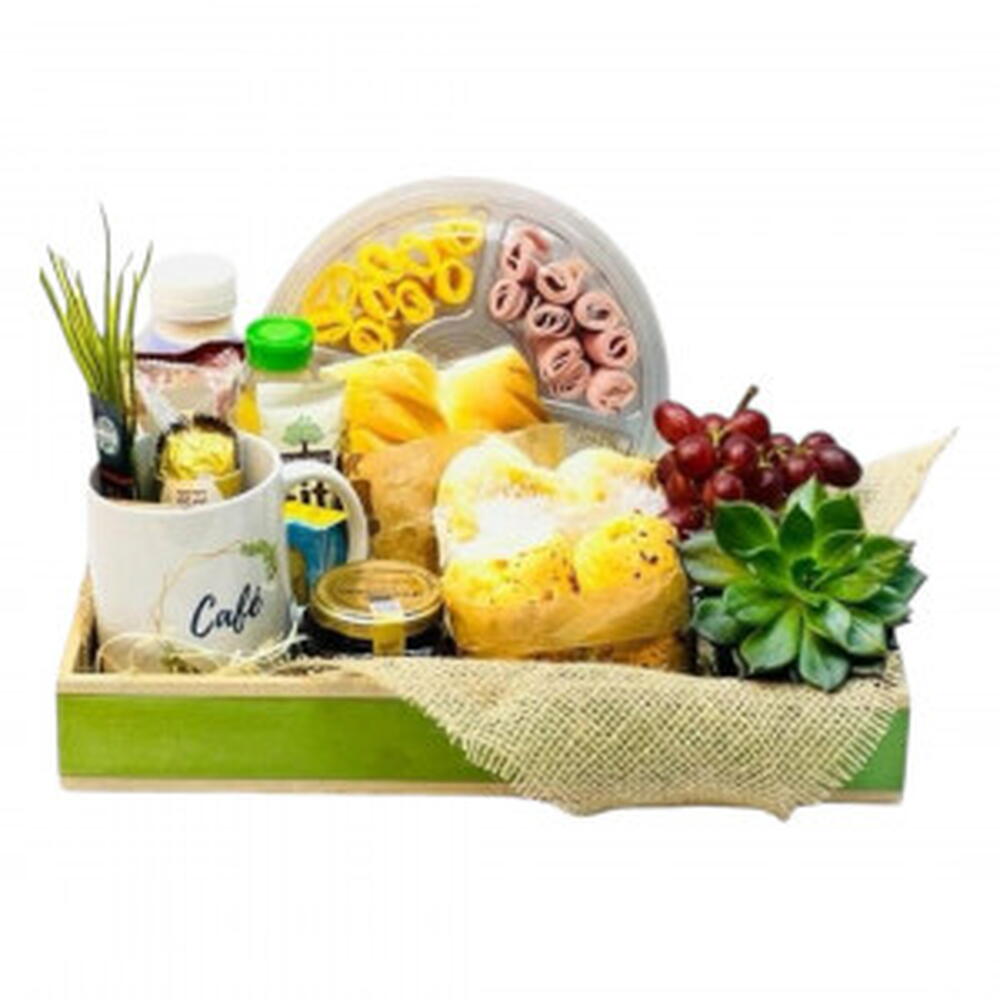 Surpreenda com nossa Bandeja Café com Suculenta, incluindo pães, frios, frutas, doces e suculenta decorativa. Presente perfeito para momentos especiais com sabor e estilo natural. Informações sobre Entrega --------------------------------------- * Entregamos para São Paulo, grande São Paulo e ABCD. * De segunda à sexta, entregamos em até 3 horas ou no mesmo dia, para pedidos feitos até às 15h00. * Sábados, entregamos no mesmo dia se o pedido for até às 10h00.