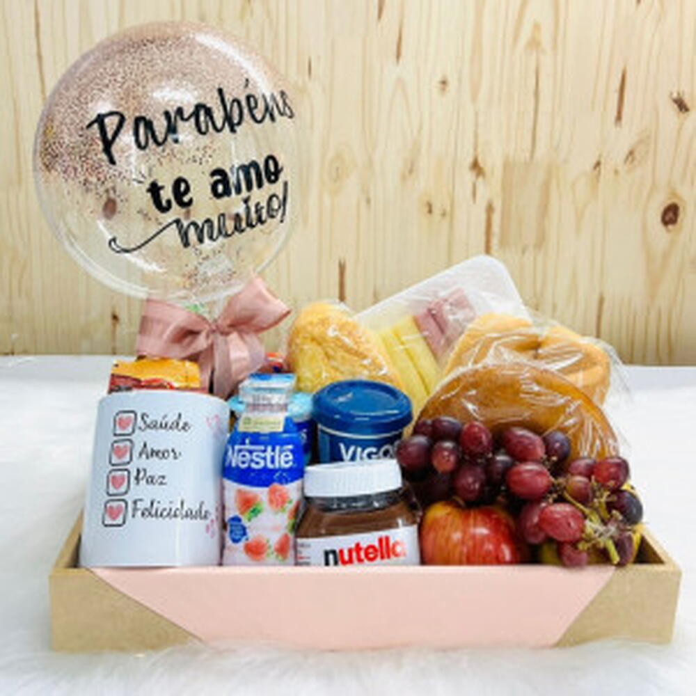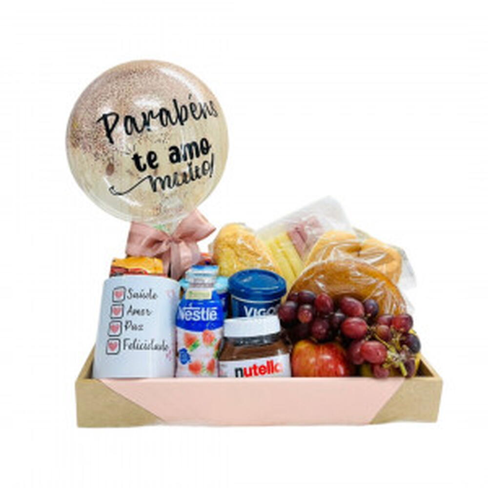 Surpreenda quem você ama com a bandeja café da manhã repleta de frutas frescas, Nutella, iogurte, pães e balão personalizado. Presente ideal para datas especiais, entrega rápida e embalagem cuidadosa. Informações sobre Entrega --------------------------------------- * Entregamos para São Paulo, grande São Paulo e ABCD. * De segunda à sexta, entregamos em até 3 horas ou no mesmo dia, para pedidos feitos até às 15h00. * Sábados, entregamos no mesmo dia se o pedido for até às 10h00.