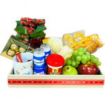 iogurte - 2 un. presunto - 1 un. queijo mussarela - 1 un. achocolatado 200ml - 1 un. suco 200ml - 1 un. requeijão - 1 un. vaso de kalanchoe - 1 un. bolachas bauducco - 2 un. tipos de pães - 3 un. bolinho bauducco - 1 un. sachê de açúcar - 2 un. sachê de café - 1 un. torrada bauducco - 2 un. frutas maçã - 1 un. frutas pera - 1 un. frutas uva - 1 un. sachê cappuccino - 1 un. caneca personalizada tema café - 1 un. ferrero rocher 8 unidade - 1 un. embalagem para viagem de mdf - 1 un.