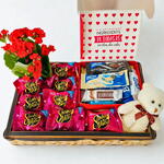 Bandeja com Muitos Chocolates e Urso de Pelucia