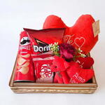 Esta Cesta de Chocolate é uma perfeita expressão de carinho e sabor. Contendo uma bandeja de alta qualidade e recheada com deliciosos chocolates Kit Kat, este presente também traz um toque de fofura com duas pelúcias de chaveiro e uma encantadora pelúcia de ursinho. Também inclui uma linda pelúcia de coração para transmitir todo o seu amor. Para completar, a cesta traz os irresistíveis snacks Doritos e Pringles, e para a apresentação ficar ainda mais elegante, todos estes itens vem envoltos em um sofisticado embrulho transparente. Um presente completo para alegrar o dia de alguém especial.