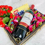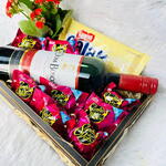 Bandeja Romântica com Vinho e Muitos Chocolates