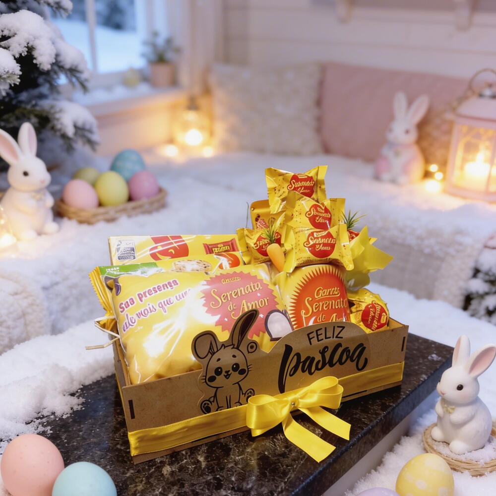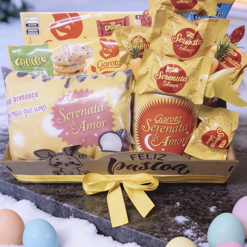 caixa de bombom garoto - 1 un. serenata de amor - 7 un. barra de chocolate garoto 90g - 2 un. bandeja mdf ou cesta - 1 un. cook - 1 un. caneca cerâmica 325ml personalizada serenata de amor - 1 un. almofadada 15x13cm - 1 un.