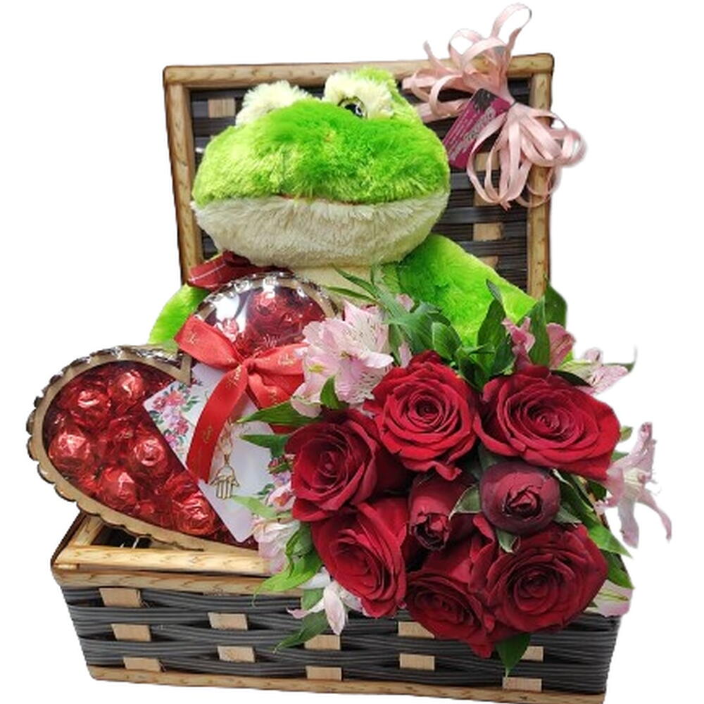 KIT ROMÂNTICO COM BAÚ 33X25X10CM, PERFEITO PARA SURPREENDER! ACOMPANHA 12 BOMBONS EM FORMATO DE CORAÇÃO, CADA UM UM MIMO DELICIOSO, UM BUQUÊ LINDO COM 8 ROSAS E ALSTROEMÉRIAS, E UMA PELÚCIA FOFA DE 28CM QUE VAI DERRETER O CORAÇÃO! Obs: Todos os itens poderão sofrer alterações dependendo da disponibilidade local, mas a qualidade e o carinho permanecem. É uma opção incrível para qualquer ocasião especial, seja um aniversário, um pedido de desculpas ou apenas para dizer eu te amo. Não perca essa oportunidade de encantar quem você ama!
