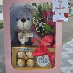 rosa vermelhas - 2 un. bolsa - 1 un. ferrero rocher 8 un unidades - 1 un. urso de pelucia 22cm - 1 un.