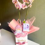 Esta luxuosa Cesta de Maternidade tem tudo o que você precisa para receber o novo membro da família com todo o amor e cuidado. Composta por uma caixa personalizada, uma linda orquídea de tamanho médio, um kit composto por uma touca e uma meia macia para o novo bebé, um cartão personalizado ou foto para registar esta ocasião especial e uma caixa embalada com todo o cuidado para garantir a perfeita apresentação. Este conjunto é o presente ideal para começar a nova etapa da maneira mais doce e marcante.