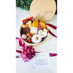 chocolate - 1 un. croissant - 1 un. biscoito amanteigado - 1 un. iorgute - 1 un. suco - 1 un. salame - 1 un. uva - 1 un. manteiga - 1 un. pão de queijo - 1 un. waffle - 1 un. morango - 1 un. caixa em mdf com tampa - 1 un. drip coffee - 1 un. bolo de cenoura com chocolate - 1 un. geleia artesanal morango - 1 un. flores no fechamento - 1 un.