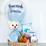 Este encantador kit de cesta de maternidade é um presente incrível para celebrar a chegada de um novo bebé. Completo com um balão personalizado, um delicioso sabonete, um cesto prático, um brinquedo de pelúcia fofo, um adorável par de sapatinhos, cotonetes Johnson em caixa, um pacote de lenço umedecido e um conjunto de shampoo e condicionador - este presente carregado de amor e utilidade é o pacote perfeito para acolher o novo integrante da família!