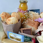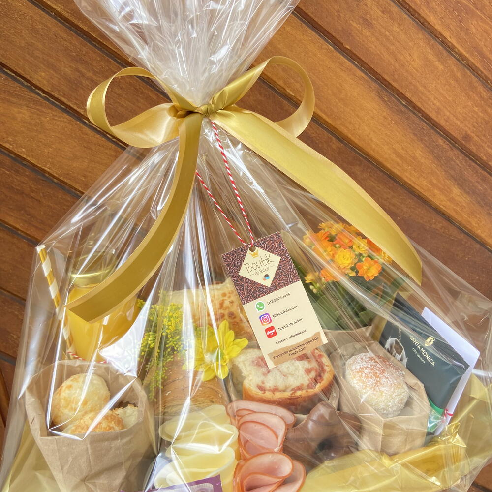 Bandeja de madeira pinus com alça de couro retangular 20x30cm Vasinho de flor Kalanchoe (cores variadas) Drip Coffee Santa Monica Gourmet café individual Chá importados sabores variados duas unidades Garrafa de vidro com suco de laranja Natural One 300ml Potinho com geléia de frutas vermelhas Queensberry Torradinhas multigrãos Pão enroladinho macio com calabresa e presunto Cookies com gotas de chocolate ao leite puro Bauducco Baguete de queijo parmesão Mini pães de queijo Quatro lua de mel recheada com creme patisseriè Peito de Peru enroladinho Mussarela enroladinha Ela vai pronta para presentear uma pessoa especial para você!, com saco celofane transparente e laço. Escreva na descrição o nome de quem irá receber a cesta e certifique-se de que ela se encontra no endereço da entrega édamanhã #pão #pãodequeijo #tábuadefriosárioário
