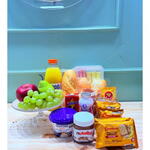 balão personalizado - 1 un. nutella - 1 un. torradas - 2 un. tipos de frutas - 3 un. tipos de pães - 3 un. suco de laranja 900 ml - 1 un. achocolatado 200 ml - 1 un. frios(mussarela e presunto) - 1 un. bolinhos bauducco - 2 un. danone de garrafa - 1 un. sachê de café - 1 un. fotos polaroide - 2 un.