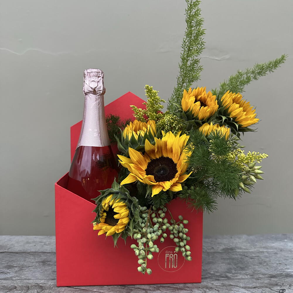 Surpreenda com um presente elegante e sofisticado. Este conjunto contém uma unidade do fino e suave chandon, acompanhado por um girassol decorativo, adicionando um toque de natureza e beleza. Ambos vêm em uma embalagem tipo envelope requintada, perfeita para ocasiões especiais ou simplesmente para demonstrar seu apreço. Celebre momentos importantes com estilo e bom gosto.
