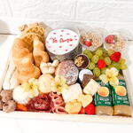 Delicie-se com esta diversificada Cesta de Café da Manhã que preparamos para você. Composta por um irresistível chocolate, dois suculentos croissants, um saboroso biscoito, uma unidade de salame, uvas frescas, uma geleia deliciosa e três autênticos pães de queijo. Além disso, ela conta com dois waffles, morangos frescos, um lombo canadense, um docinho sonho, queijo prato, uma baguete crocante, um iogurte com granola, um muffin de chocolate que derrete na boca, um tentador rocambole e uma unidade de torrada slim tost. Para completar, acompanha dois sucos naturais. Perfeita para compartilhar em família, surpreender alguém especial ou desfrutar de um café da manhã farto e variado. Comece o dia da melhor maneira possível com nossa cesta.