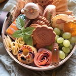 croissant - 1 un. iogurte - 1 un. suco - 500 ml torrada - 6 un. sachê de chá - 1 un. mel - 50 ml waffles - 2 un. uvas - 100 gr. brownie - 1 un. donuts - 1 un. biscoito folhado - 2 un. biscoito decorado - 1 un. presunto fatiado - 75 gr. madeleine - 1 un. bisnaguinha - 2 un. biscoito com cobertura de chocolate - 2 un. mini geleia artesanal - 50 ml drip coffee (café individual) - 1 un. queijo fatiado - 75 gr. biscoito de baunilha - 2 un. biscoito de leite com recheio - 2 un. mini bolo ( consultar sabores) - 1 un. pão recheado ( consultar sabores) - 1 un. biscoito holandês - 1 un. biscoito recheado com creme de avelã - 1 un.