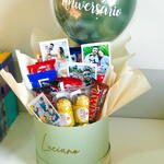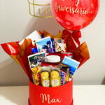 Descubra o prazer irresistível da cesta de chocolate recheada de delícias. Composto por uma unidade de Nutella, três unidades de Kit Kat e Ferrero Rocher cada, dois sabores de Kinder Bueno, Snickers e Twix. Para adicionar um toque refrescante, inclui uma unidade de Coca Cola. Para um sabor adicional de cacau, temos uma barra de chocolate de 80g e uma caixa de Bis. E, para completar a surpresa, uma unidade do balão de 25cm com a frase à escolha está incluída. Mime-se ou surpreenda alguém especial com este deleite indulgente.