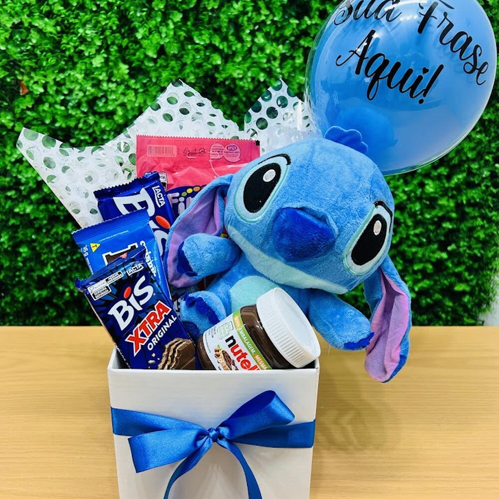 Box com Pelucia Stitch e Balão Personalizado