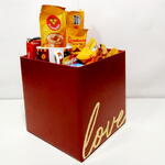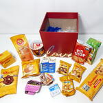 suco - 1 un. torrada - 1 un. biscoito salgado - 1 un. cappuccino - 1 un. polenguinho - 1 un. mini bolo - 1 un. cartão para mensagem - 1 un. sachê de açúcar - 2 un. blister de creme de amendoim - 2 un. sachê de adoçante - 2 un. laço decorativo - 1 un. blister de geléia 10g - 2 un. paçoca - 1 un. palha ou folha de celofane - 1 un. cookies com gostas de chocolate - 1 un. celofane para fechamento - 1 un. amanteigados artesanais - 6 un. box cartonado cores variadas - 1 un.