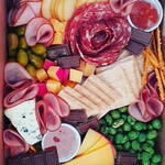 salame - 60 gr. batata pringles - 75 gr. amendoim - 75 gr. queijo gouda - 60 gr. queijo gorgonzola - 60 gr. geleia artesanal - 60 ml pate - 100 gr. azeitona - 75 gr. salgadinho pingo de ouro - 75 gr. chocolate ferreiro rocher - 3 un. mini torradas - 75 gr. lombo - 60 gr. uva ou morango - 100 gr. queijo parmessão - 60 gr. copa lombo - 60 gr. pão ( consultar tipo) - 1 un.