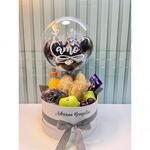 frios (mussarela e peito de peru) - 1 un. torradas bauducco - 2 un. pães integral - 3 un. suco 900 ml - 1 un. requeijão light - 1 un. chocolate amargo milka - 1 un. box cartonada para viagem - 1 un. balão bubble personalizado - 1 un. tipos de frutas - ameixa - 1 un. fruta - uva - 1 un. fruta - maçã verde - 1 un.
