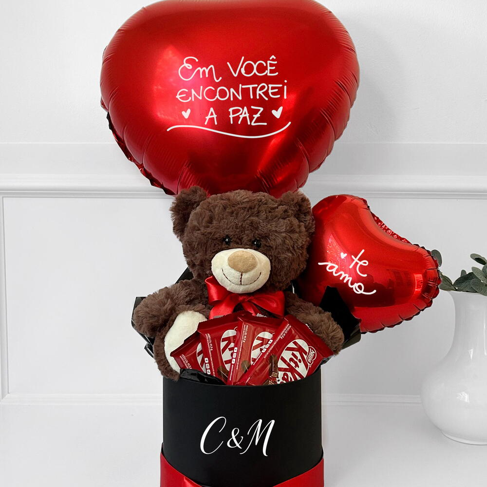 chocolates kit kat - 4 un. balão coração g - 1 un. balão coração p - 1 un. box personalizado (informe nome no chat) - 1 un.