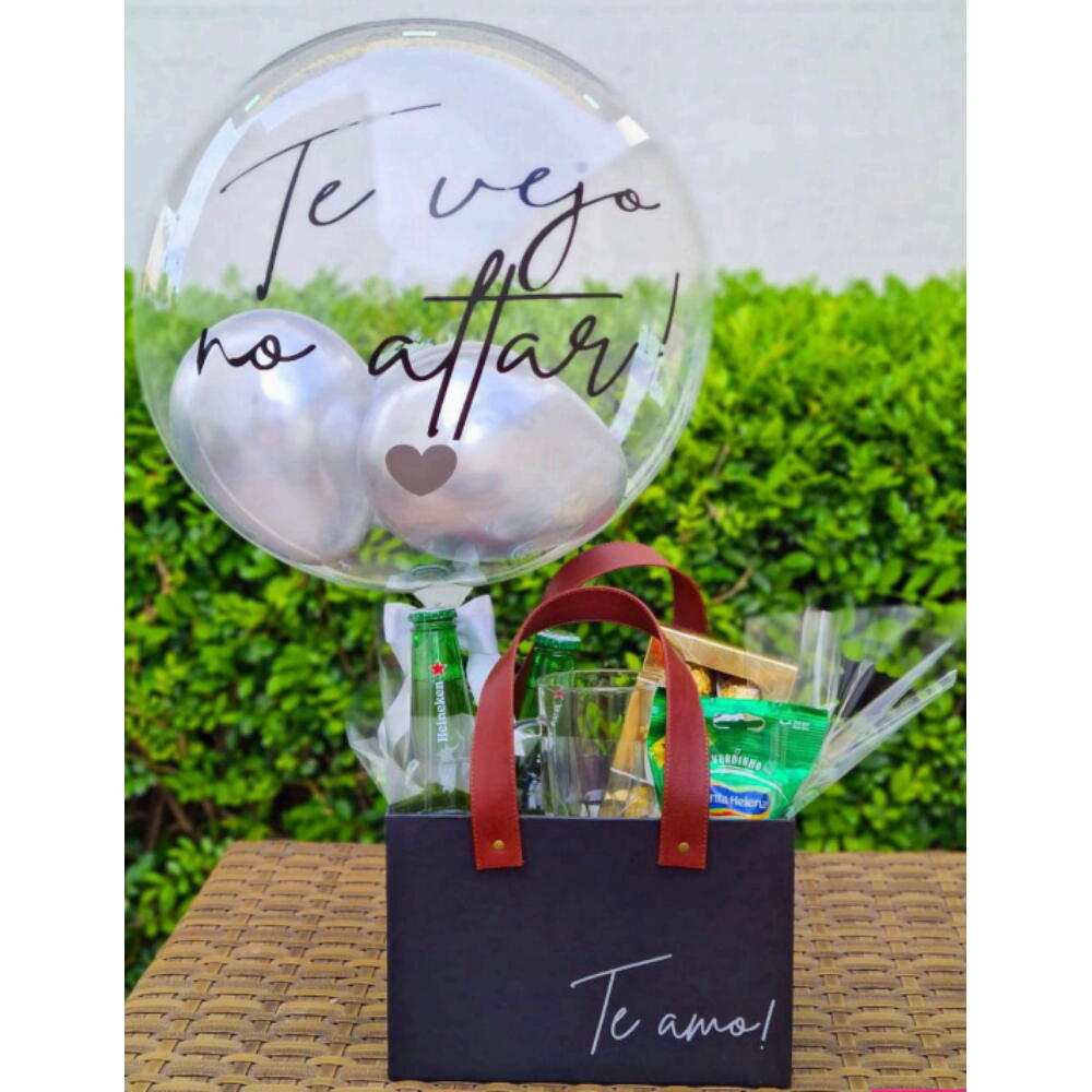 Este presente exclusivo com bebida é uma combinação perfeita de sabor e estilo. Ele contém um balão bubble personalizado, uma elegante caneca de vidro, duas refrescantes cervejas Heineken, um estojo de Ferrero Rocher para um toque doce, um pacote de amendoim para petiscar e tudo isso apresentado em uma caixa cartonada de alta qualidade. É o presente perfeito para celebrar momentos especiais ou simplesmente demonstrar seu carinho.