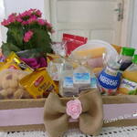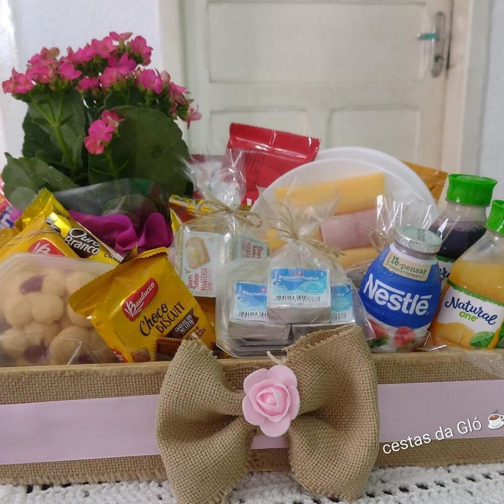 flores - 1 un. brioche - 3 un. caneca - 1 un. bolinho bauducco - 1 un. manteiga - 1 un. torradas bauducco - 1 un. biscoito caseiro - 1 un. poleguinho - 3 un. suco natural integral - 2 un. barra de chocolate lacta ou nestlé - 1 un. iogurte nestlé - 1 un. drip cofee - 2 un. pães bisnaguinha - 3 un. bolinho de rolo - 1 un. balão decorativo - 1 un. cartãozinho escrito a mão - 1 un. choco biscoito bauducco - 1 un. cookies nestlé ou bauducco - 1 un. frios mussarela e peito de peru - 1 un. geleia sant dalfour 28 gramas - 1 un.