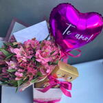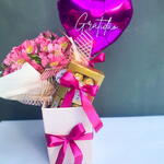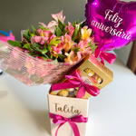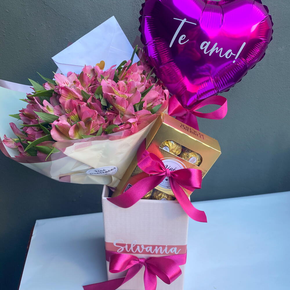 ferrero rocher - 8 un. balão p personalizado - 1 un. cartão - 1 un. caixa personalizada - 1 un. arranjo p floral - 1 un.