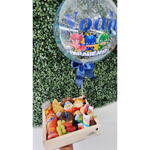 Mergulhe no universo sublime da Cesta Infantil. Cuidadosamente preparado com um sortimento colorido e delicioso, que traz um chame para todas as crianças. Contendo uma charmosa bandeja de pinus, decorada com um balão personalizado. Entre as delicadezas artesanais, encontramos um bolo de cenoura coberto com chocolate, irresistivelmente suave e saboroso, acompanhado por um Nescau reconfortante para adoçar ainda mais o paladar. O waffle e o croissant recheado somam-se a esse conjunto, trazendo o gostinho da tradição europeia. E para os amantes do nosso tradicional pão de mel e pão de queijo, presentes nesta seleção. Acompanhados pelo bolinho Madeleine, deliciosas uvas e morangos frescos e uma porção generosa de marshmallow para garantir a dose de doçura. Para fechar com chave de ouro, um Kinder Ovo para despertar a alegria e a surpresa em cada criança. É o presente perfeito!