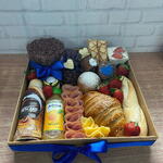 queijo - 1 un. nutella - 1 un. iogurte - 1 un. suco - 1 un. pão de mel - 1 un. pão doce - 1 un. uvas - 1 un. morangos - 1 un. requeijão - 1 un. biscoitos folhados - 1 un. muffin - 1 un. pão salgado - 1 un. lombo - 1 un. mini bolo recheado - 1 un. bebida láctea - 1 un. caixa em madeira mdf 30x30 - 1 un. pão folhado - 1 un.