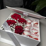 Este box de flores é uma combinação perfeita de beleza e doçura. Composto por 4 encantadoras rosas vermelhas, 1 unidade de folhagens e complementos para adicionar aquele toque de naturalidade e frescor ao conjunto. A surpresa fica ainda melhor com a inclusão de 8 deliciosas unidades de Raffaello, garantindo uma explosão de sabor. Tudo isso cuidadosamente embalado numa elegante caixa box decorada, a qual é finalizada com um delicado laço para dar aquele toque final de sofisticação. Um presente verdadeiramente luxuoso e pensado nos mínimos detalhes, para ocasiões realmente especiais.