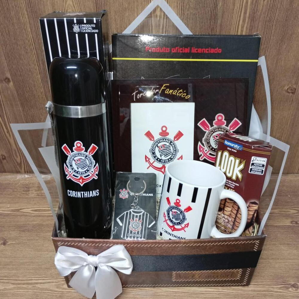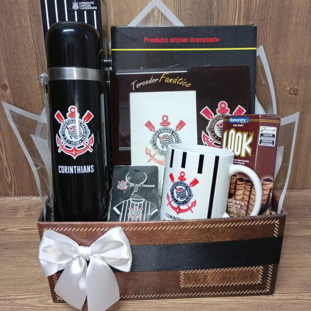 Esta Cesta para Homens é o presente perfeito para os fãs do Corinthians! Ela contém um porta retrato do Corinthians, para guardar os melhores momentos; uma garrafa de alumínio do Corinthians, ideal para manter suas bebidas favoritas fresquinhas; uma caneca de porcelana, para começar seu dia com estilo; um chaveiro e um delicioso look chocolate para adoçar seu dia. Surpreenda o corintiano especial da sua vida com esta cesta especialmente criada para ele!