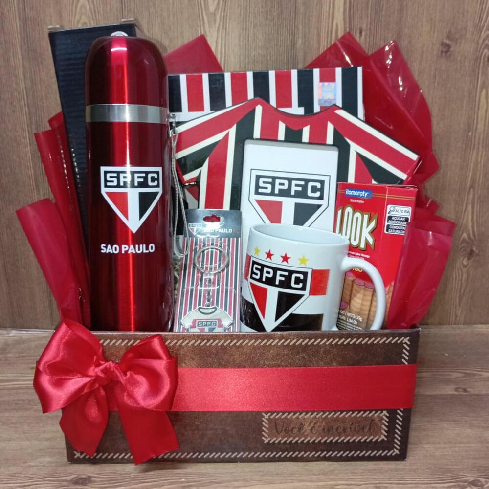 Seja para presentear um verdadeiro fã do São Paulo ou para homenagear a sua paixão pelo tricolor paulista, a Cesta para Homens é a escolha ideal. Ela vem com um porta retrato e uma garrafa de alumínio personalizados do São Paulo, perfeitos para dar um toque de torcedor em qualquer ambiente. Além disso, acompanha uma elegante caneca de porcelana e um chaveiro, ambos com o emblema do seu time do coração. Para adoçar o momento, a cesta ainda inclui um delicioso look chocolate, tornando-a um presente completo e inesquecível.