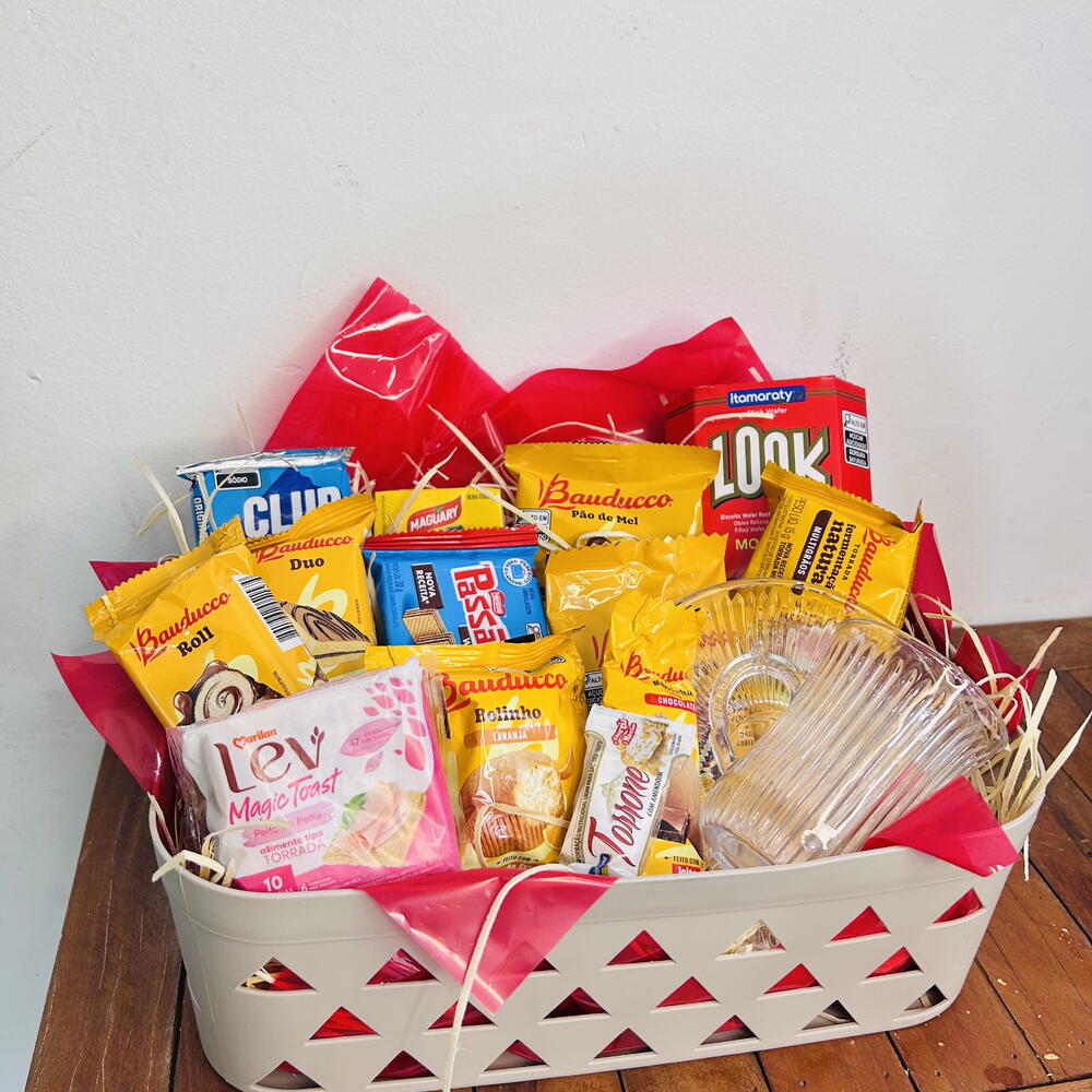 Comece o dia com um sorriso no rosto com nossa Cesta de Café da Manhã. Esta encantadora cesta de madeira contém 15 unidades de deliciosos itens de mini bauducco, perfeitos para um deleite matinal ou lanche a qualquer hora do dia. A cesta também inclui uma aconchegante xicrinha de vidro, ideal para o seu café ou chá preferido. Tudo isso é apresentado em uma bela embalagem, finalizada com um elegante laço. Elevará suas manhãs a um novo patamar de prazer e satisfação.