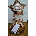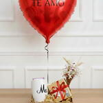 mini buque de flores secas - 1 un. sache de chá - 2 un. caixa elegante - 1 un. ferrero roche com 4 - 1 un. caneca personalizada com inicial do nome do presenteado - 1 un. balão coração metalizado 22 cm personalizado - 1 un.