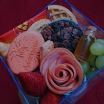 croissant - 1 un. polenguinho - 2 un. mel - 50 ml waffles - 1 un. uvas - 75 gr. biscoito folhado - 2 un. presunto fatiado - 75 gr. madeleine - 1 un. mini geleia artesanal - 50 ml drip coffee (café individual) - 1 un. biscoito decorado artesanal - 1 un.
