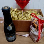 mini espumante - 1 un. caixa elegante - 1 un. trio de nuts + amendoas doces + amendoas defumadas - 1 un. balao coração metalizado 22 cm personalizado - 1 un.