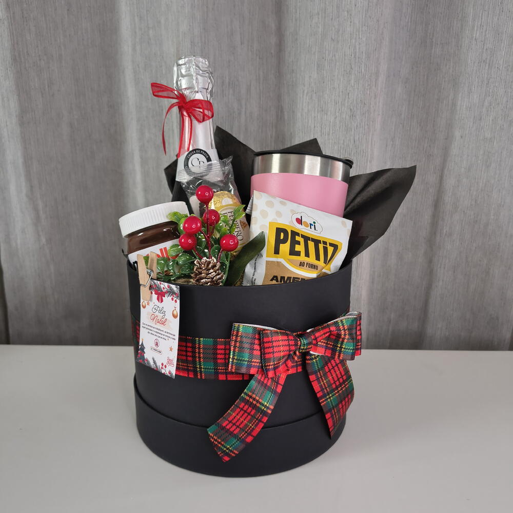 Desfrute deste maravilhoso Cesta de Natal, meticulosamente preparado para comemorar as delícias da temporada. Inclui um delicioso Amendoim Crocante Pettiz de 50g, um Trio Ferrero Rocher para um toque indulgente, e uma Nutella de 140g para adicionar um pouco de suavidade. Temos também um copo térmico Stanley de 473ml, perfeito para manter suas bebidas na temperatura ideal, e um Champanhe Chuva de Prata de 660ml para brindar aos bons tempos. Por último, mas não menos importante, incluímos um encantador enfeite de decoração natalina para adicionar um toque festivo à sua casa.