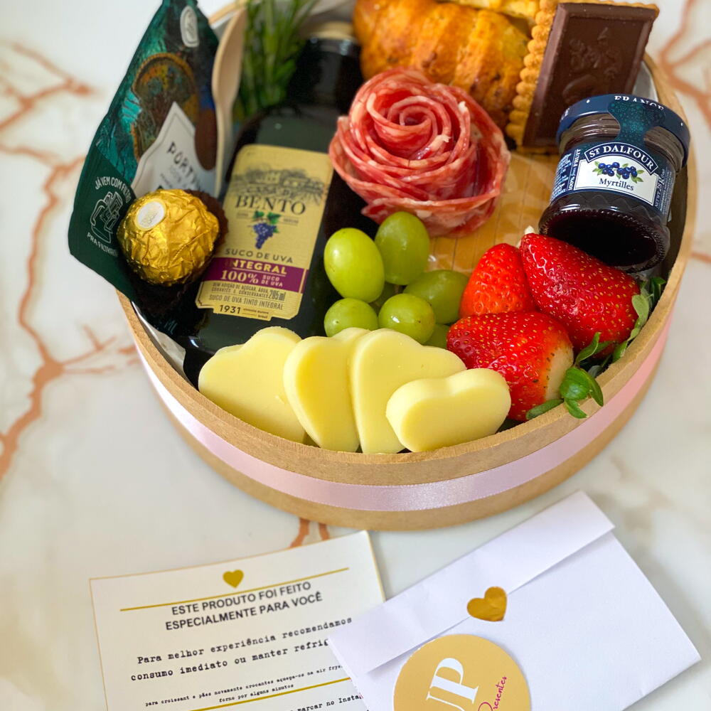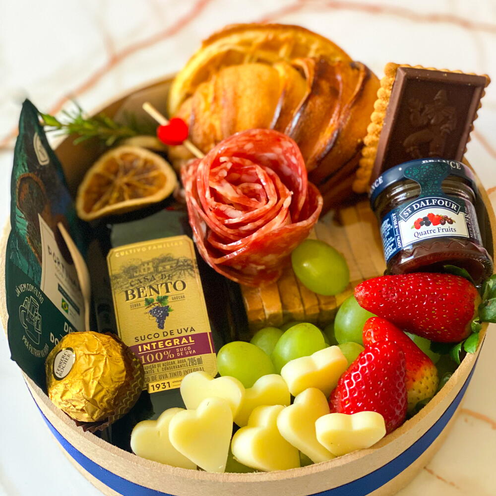 Descubra o prazer de um desjejum requintado com a nossa Cesta de Café da Manhã. Esta seleção inclui um croissant crocante, um delicioso waffle, duas tipos de frutas frescas, drip coffee para uma dose de cafeína matinal, mini torradas para algo leve e crocante, e suco de 300 ml para uma explosão refrescante de sabor. Além disso, ainda acompanha uma unidade de ferrero rocher para um doce fim de refeição. Temos também uma mini geleia Dalfour, queijo formato para um toque salgado e duas unidades de flor salame ou lombo canadense para uma degustação mais robusta. Experimente esta deliciosa maneira de começar o dia!