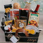 Este conjunto elegante de presente com bebida é ideal para ocasiões especiais. O conjunto inclui uma box executive contendo 10 unidades de deliciosos queijos variados e um excelente vinho chileno Conha y Toro para harmonizar. Além disso, a box contém também um pedaço de queijo brie, irresistível creme de brie, uma linda taça de vidro, uma caixa sedutora de Ferrero Rocher, espátula, geleia especial para queijos, bruschette, um tradicional salame italiano, palitos de parmesão crocantes, baguete fresca e batata. Para completar, toda esta seleção vem acondicionada em uma sacola resistente com alça de couro. Um presente sofisticado para apreciadores de queijos e vinhos.