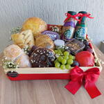 Comece o seu dia com um banquete chique com a nossa Cesta de Café da Manhã. Inclui uma seleção de iguarias apetitosas cuidadosamente selecionadas. Desfrute de um donut fresco (1 un.), acompanhado por dois cappuccinos clássicos do Star Bucks (2 un.) e um pão aconchegante (1 un.). Também inclui uvas refrescantes (200 gr.), uma maçã suculenta (1 un.), um iogurte grego nutritivo (1 un.) e um potinho de nozes saboroso (1 un.). Para um toque especial, adicionamos um potinho de creme de ricota cremoso (1 un.) e um pão crostodo de queijo irresistível (1 un.). Todas estas delícias são apresentadas numa cesta de pinus decorada (1 un.) com um delicado mosquitinho (1 un.), tornando-a no presente perfeito para si mesmo ou para alguém especial. Comece os seus dias com um sorriso... e com o nosso delicioso café da manhã!