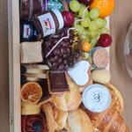 croissant - 2 un. balão personalizado - 1 un. waffle - 2 un. drip coffe - 2 un. iogurtes - 2 un. cha - 2 un. biscoitos doces porção - 2 un. vela de aniversario - 1 un. suco 300 ml uva - 1 un. charcutaria (lobo ou salame) porção para duas pessoas - 1 un. dois tipos de queijo - porção para duas pessoas - 1 un. bolo naked cake 250 gr - 1 un. frutas da estação porção para doia - 1 un.