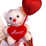 laço especial - 1 un. bombom raffaello - 4 un. ursinho de pelúcia tamanho p - 1 un. celofane embalagem - 1 un. ferrero rocher branco barra 90g - 1 un. coração vermelho plick - 1 un.