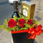 Este presente luxuoso é perfeito para ocasões especiais. Contendo trio de vinhos tintos sofisticados de 750 ml, valorizados por sua excepcional qualidade e sabor ricos. Acompanhado de 3 rosas delicadas e uma elegante taça de Tango para adicionar um toque de elegância à ocasião. Este conjunto inclui ainda 8 deliciosas unidades de Ferrero Rocher, embaladas artisticamente numa caixa cartonada decorada com um laço charmoso. Uma excelente escolha para surpreender e deliciar alguém especial!