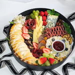 Uma noite memorável começa aqui. Cada detalhe desta box foi pensado para criar momentos que merecem ser eternizados. 3 Queijos nobres entre: gouda, estepe, gorgonzola, parmessão, camembert, brie, dividem espaço com 3 charcutaria entre elas: salame hamburguês, copa, lombo canadense. Tâmaras recheadas com gorgonzola, damascos, morangos e uvas trazem o toque adocicado. O sabor é finalizado com pão baguete, geleia artesanal, pastinha ou compota, mix de castanhas e amêndoas defumadas. . Caixa cartonada finalizado com laço de cetim. Serve 2 a 3 pessoas como refeição principal ou 4 pessoas como entrada. Acompanha cartão de mensagem.