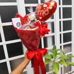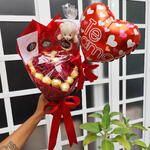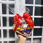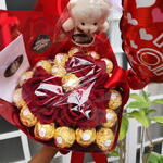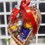 Buquê de Chocolate com Ferrero Rocher e Rosas Coração + Cesta de Chocolate