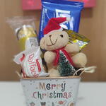 Apresentamos a Cesta de Natal repleta de surpresas doces e deliciosas para alegrar sua comemoração. Este conjunto inclui um irresistível Bombom Rafaello, uma barra de chocolate Lacta ao Leite, um pack com 3 Ferrero Rocher para adicionar um toque de luxo, e um saudável amendoim para um saboroso petisco. A cesta também agrega charme à festividade com uma mini árvore decorativa e um cachepot natalino em metal. E para completar, incluímos um charmoso chaveiro de pelúcia com temática natalina. Ideal para presentear e compartilhar a magia do Natal!