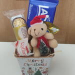 bombom rafaello - 1 un. barra lacta ao leite - 1 un. ferrero de 3uni - 1 un. mini árvore decorativa - 1 un. pelucia chaveiro de natal - 1 un. cachepot metal natalino - 1 un. amendoin pequeno - 1 un.