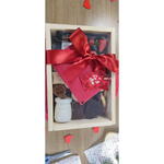 Box lindissima com Um lindo café para dois montados em caixa com tampa modelo gaveta 30x20 de Pinus decorada com laço de cetim acompanha cartão + tag de/para tematica