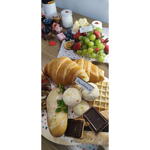 queijo - 1 un. croissant - 1 un. manteiga - 1 un. capuccino - 1 un. waffle - 2 un. mix de nuts - 1 un. cha - 1 un. pães de queijo recheados - 4 un. suco integral 300 ml - 1 un. charcutaria - 1 un. café drip coffe - 2 un. frutas da estação (porção) - 2 un. mini baguete - 1 un. iogurte em pote de vidro - 1 un. torradas slim tosts - 1 un. doce de leite (porção) - 1 un. nutella (porção) - 1 un. cheam cheese (porção) - 1 un.
