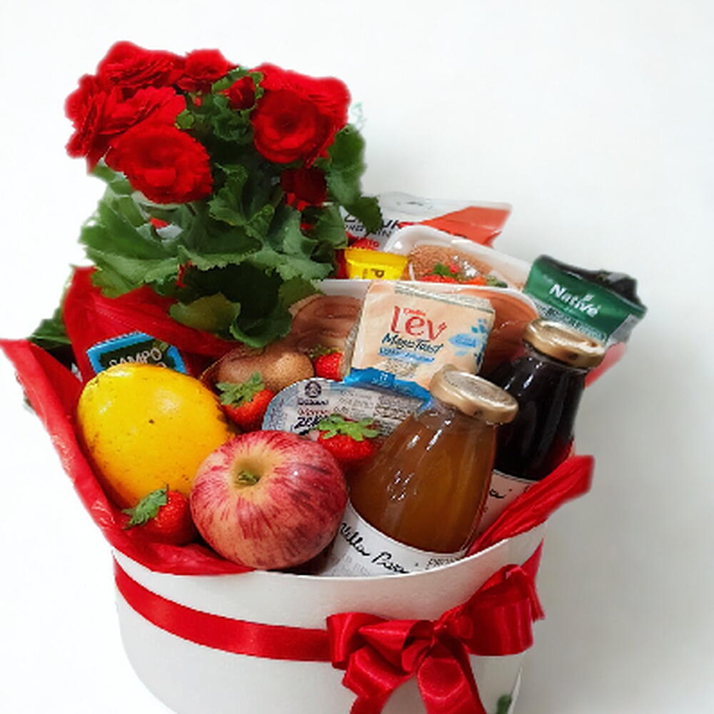 A Cesta Bem-Estar é uma opção deliciosa e saudável para quem busca um momento de bem-estar. Ela contém 4 frutas da época frescas, acompanhadas de um iogurte light, duas barras de cereais e um pacote de biscoito integral. Para complementar, a bandeja inclui uma porção de pão integral, geléia, água de coco e suco de uva integral, além de um chá pronto para beber. Também há uma torrada, uma porção de queijo branco e peito de peru, oferecendo um equilíbrio perfeito de sabores. E, para dar um toque especial, a bandeja vem acompanhada de um vaso de flor, tornando o presente ainda mais encantador.